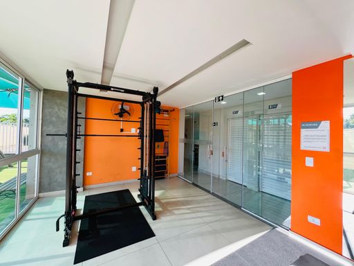 O condomínio oferece diversas opções de lazer, como churrasqueira, piscina e varanda gourmet. E para sua segurança e conforto, o apartamento possui alarme, ar-condicionado, elevador, interfone e portão eletrônico.