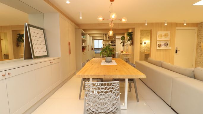 Impecável, com extremo bom gosto e uma planta prática para atender toda a família com muito conforto. Os acabamentos são diferenciados e naturais, trazendo atemporalidade. Além da qualidade do vinílico nos dormitórios, porcelanatos em grandes formatos, linha premium nos banheiros, persianas automatizadas, vidros duplos para o isolamento acústico, portas laqueadas dando um acabamento