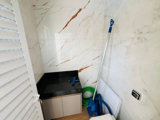 O imóvel é semi-mobiliado e apresenta acabamentos de alto padrão, como piso de porcelanato e laminado.