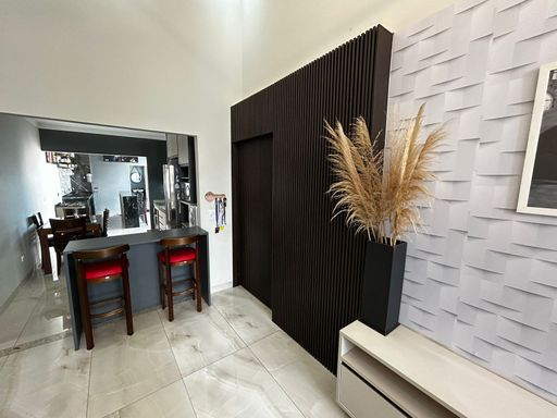 Além disso, a casa está localizada em um terreno com topografia aclive e dispõe de área de lazer completa com piso laminado e porcelanato.