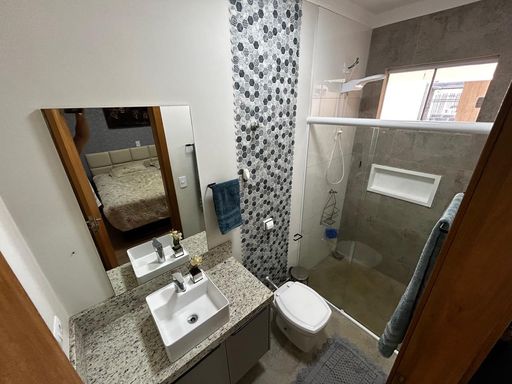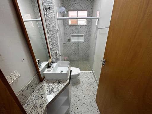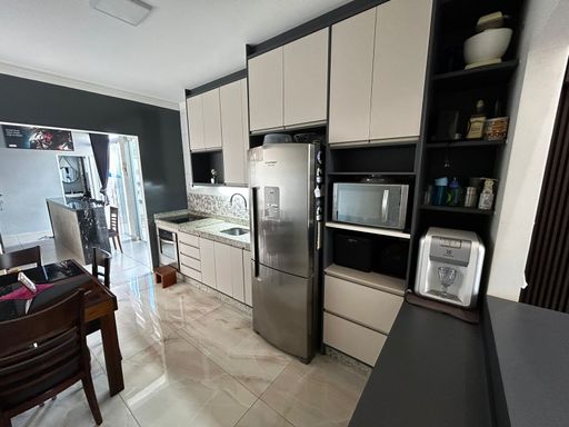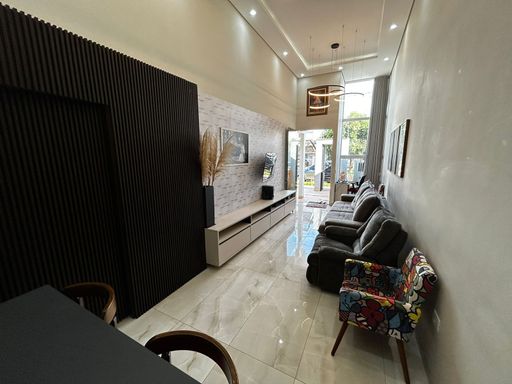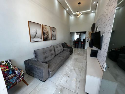 Casa ampla com 139m² de área construída, 3 suítes, 2 vagas cobertas, 4 banheiros, 3 dormitórios, sala de estar e de jantar, lavabo, copa, despensa, varanda e muito mais.