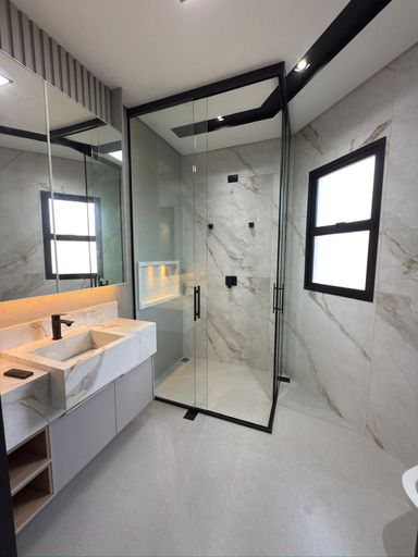 A casa é semi-mobiliada e possui acabamentos de alto padrão, como piso vinílico, porcelanato e laminado.