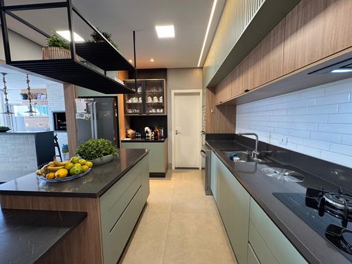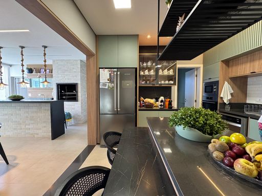 • Cozinha integrada à sala de jantar e ao espaço gourmet