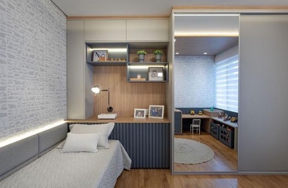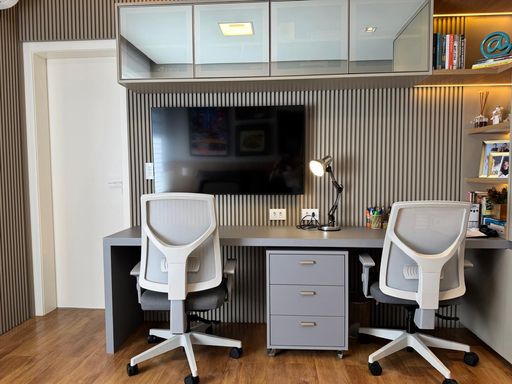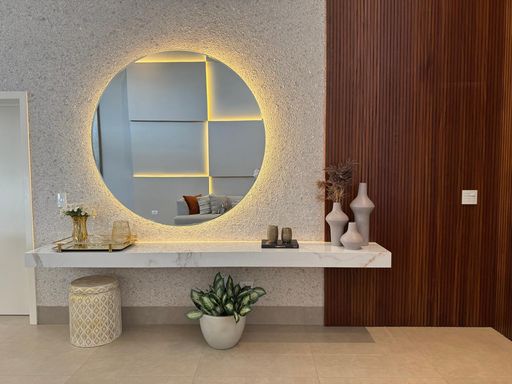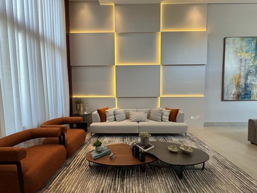 • Sala com pé-direito duplo, proporcionando amplitude e iluminação natural