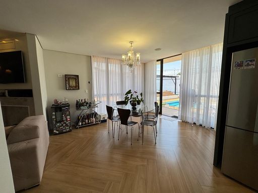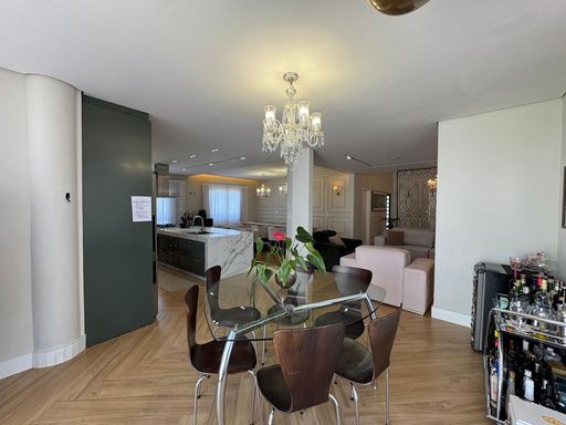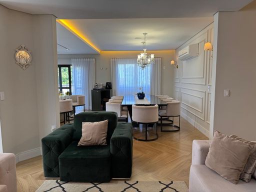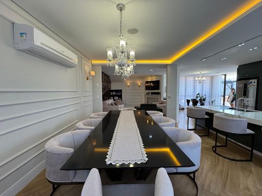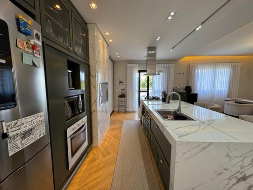 • Cozinha gourmet integrada à sala de jantar e à sala de estar, criando um ambiente social amplo e acolhedor;